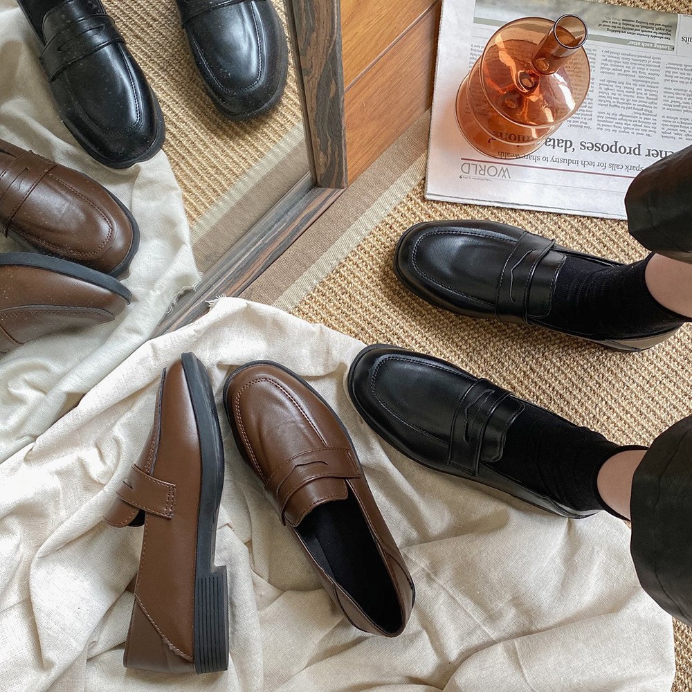 Giày da bít mũi đế dày phong cách thời trang thanh lịch dành cho nữ free ship